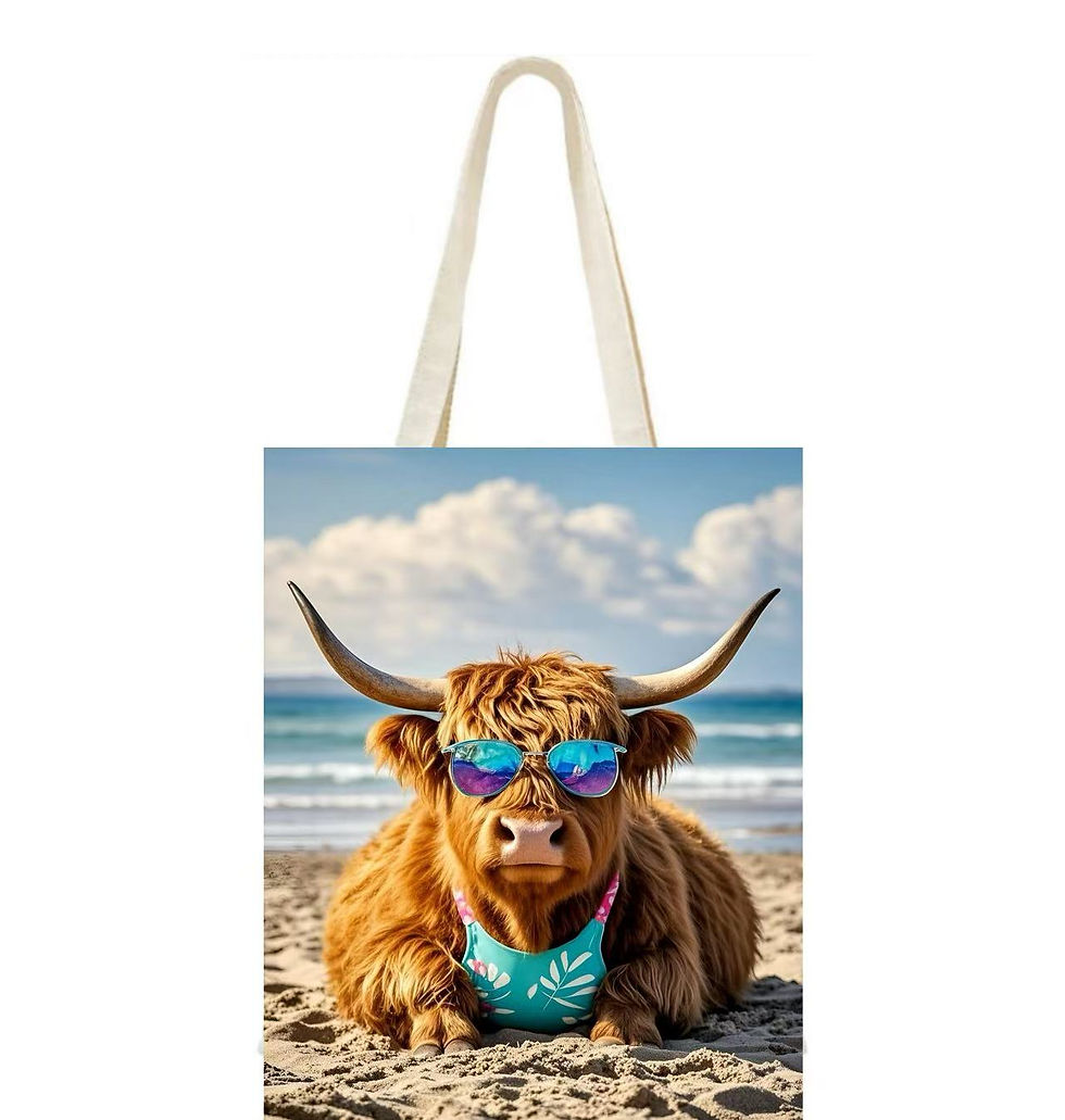 Tote Bag - Highland Cow Beach